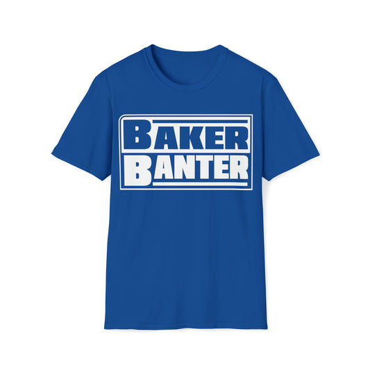 Baker Banter Friday Night Wrestling Tee - Unisex Softstyle - Blue/White, White/Blue
